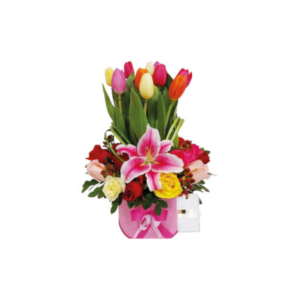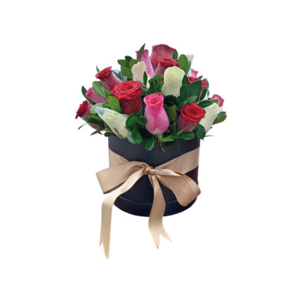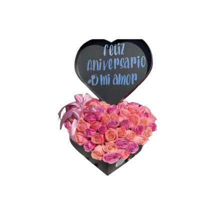 Box con 50 rosas blancas y lilas