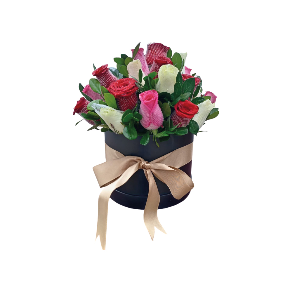 Box Con 24 rosas de colores rojo, fucsia, blanca,